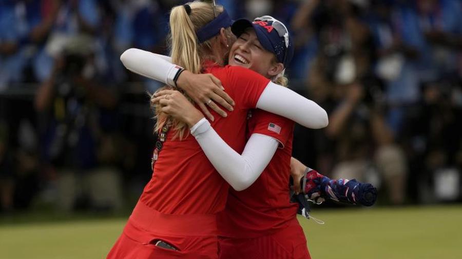 Jessica korda finished in a tie for 15th, then returned to the 18th hole to embrace nelly after her victory.